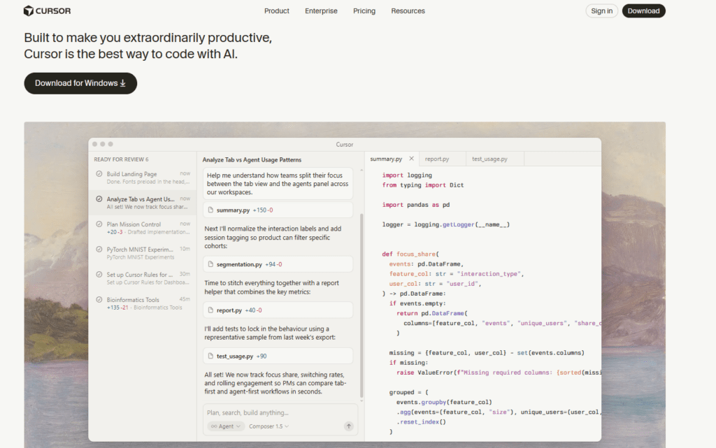 2. Cursor – The AI-Native Coding Editor